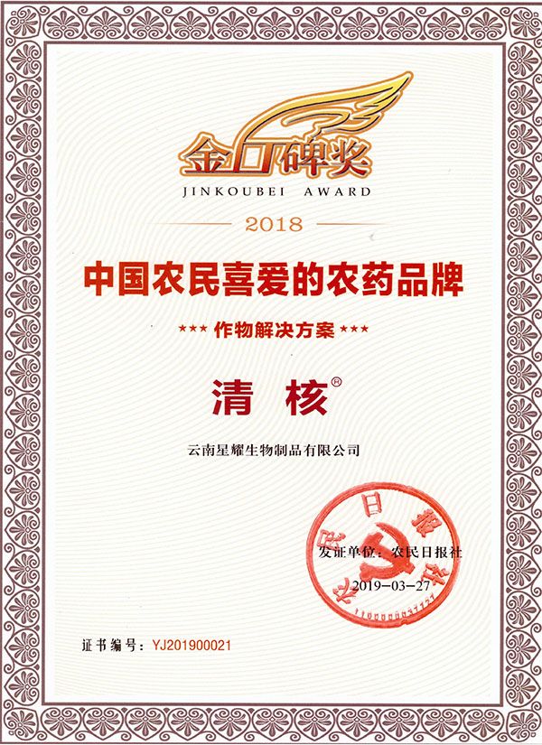 2019年9月16日公司產品 “喜獲” “2018年植保產品貢獻獎”!